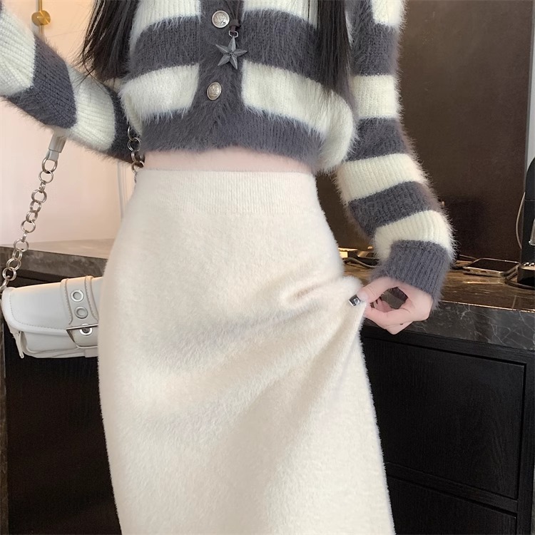 毛足の長いニット素材が季節感を演出し防寒性も兼ね備えた実用的なアイテム