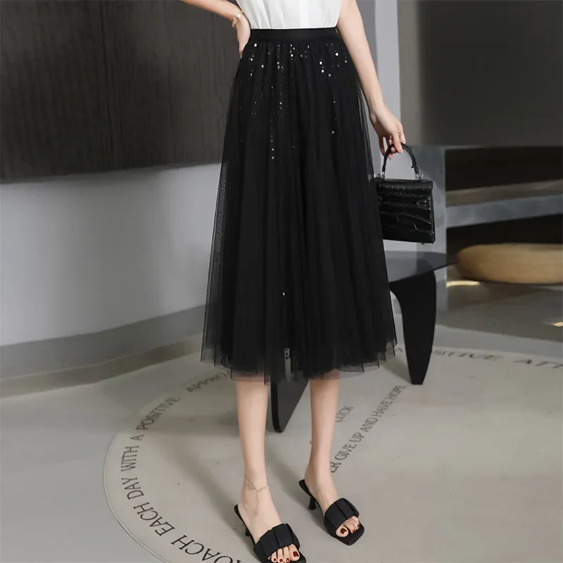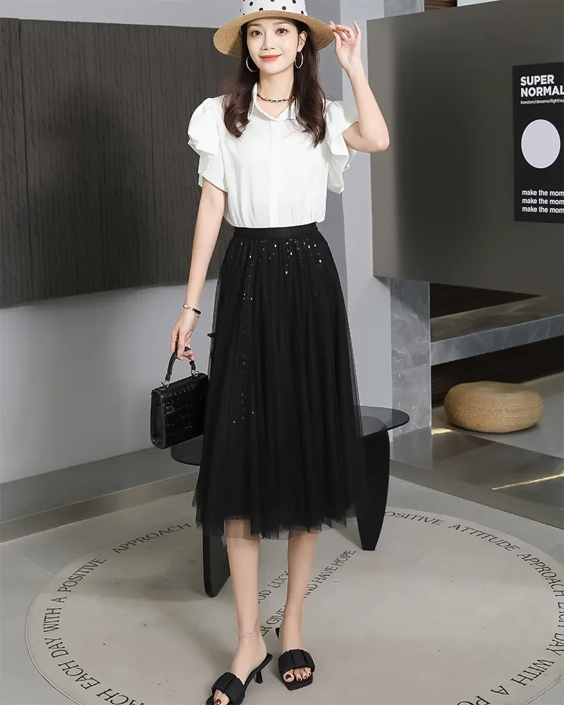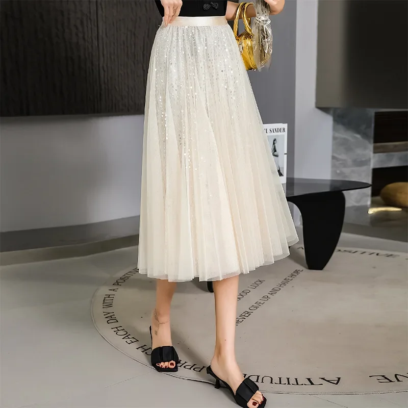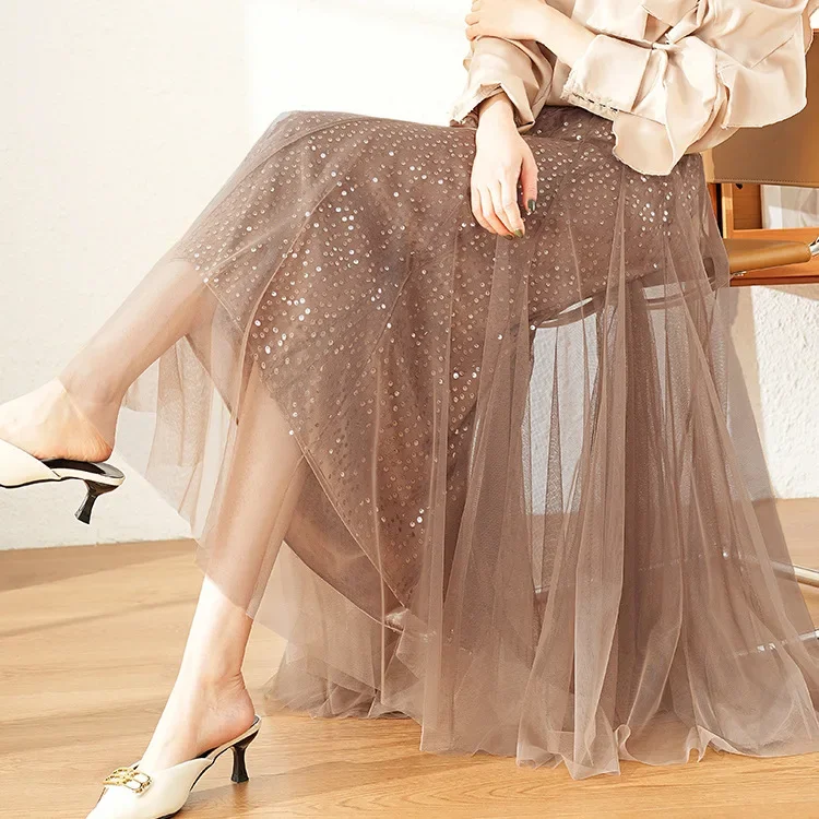 軽やかなチュール素材に繊細なラメをあしらった、華やかなフレアスカートです。