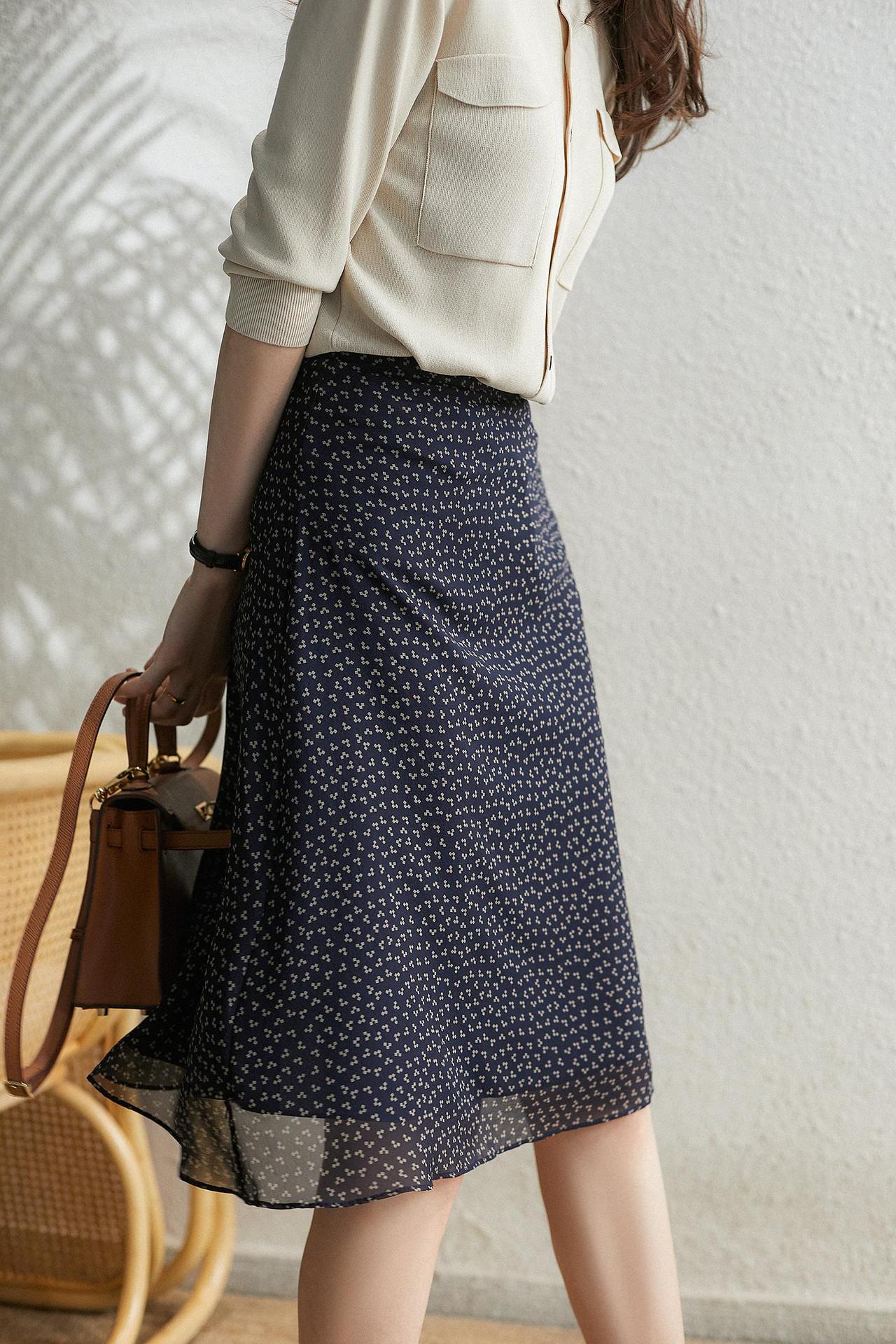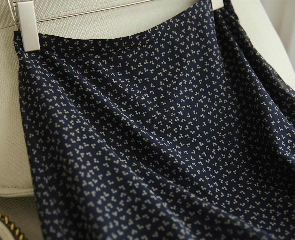 軽やかなシフォン素材を使用し、動くたびに揺れる裾が女性らしさを演出します。