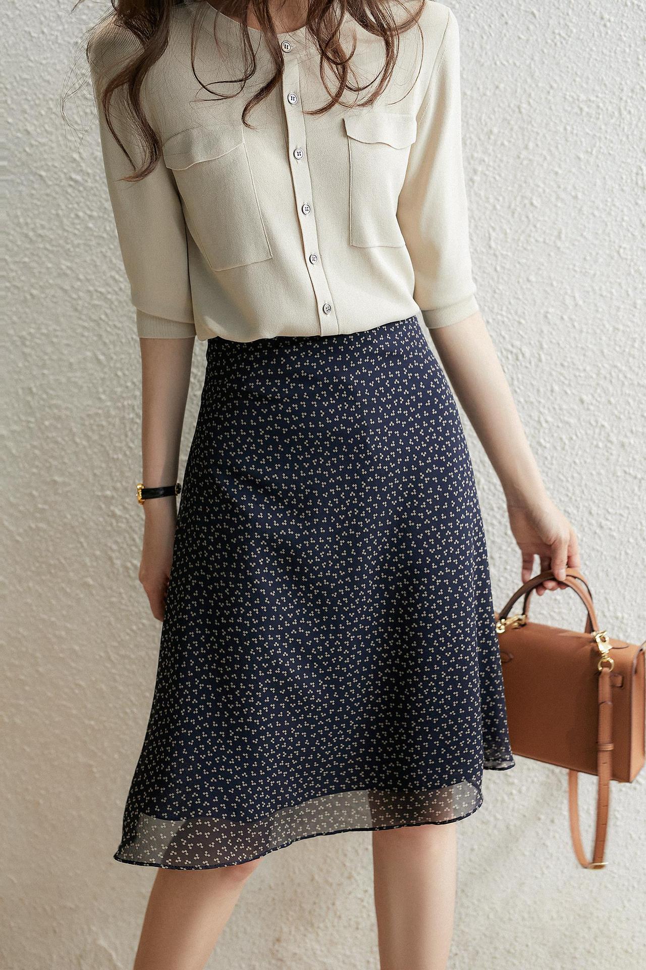 繊細な小花柄が全体に散りばめられた上品なフレアスカートです。