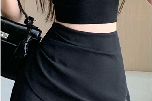 スカートの上にシフォン生地を重ねた個性的なデザインで、一枚でこなれ感のある着こなしが完成