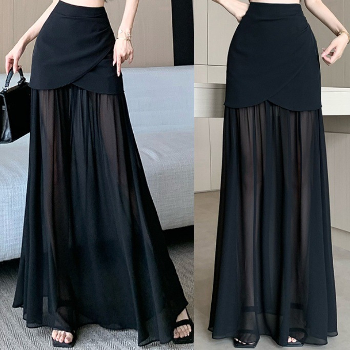 透け感のあるシフォン生地が歩くたびに優雅に揺れ、女性らしい上品な印象を演出