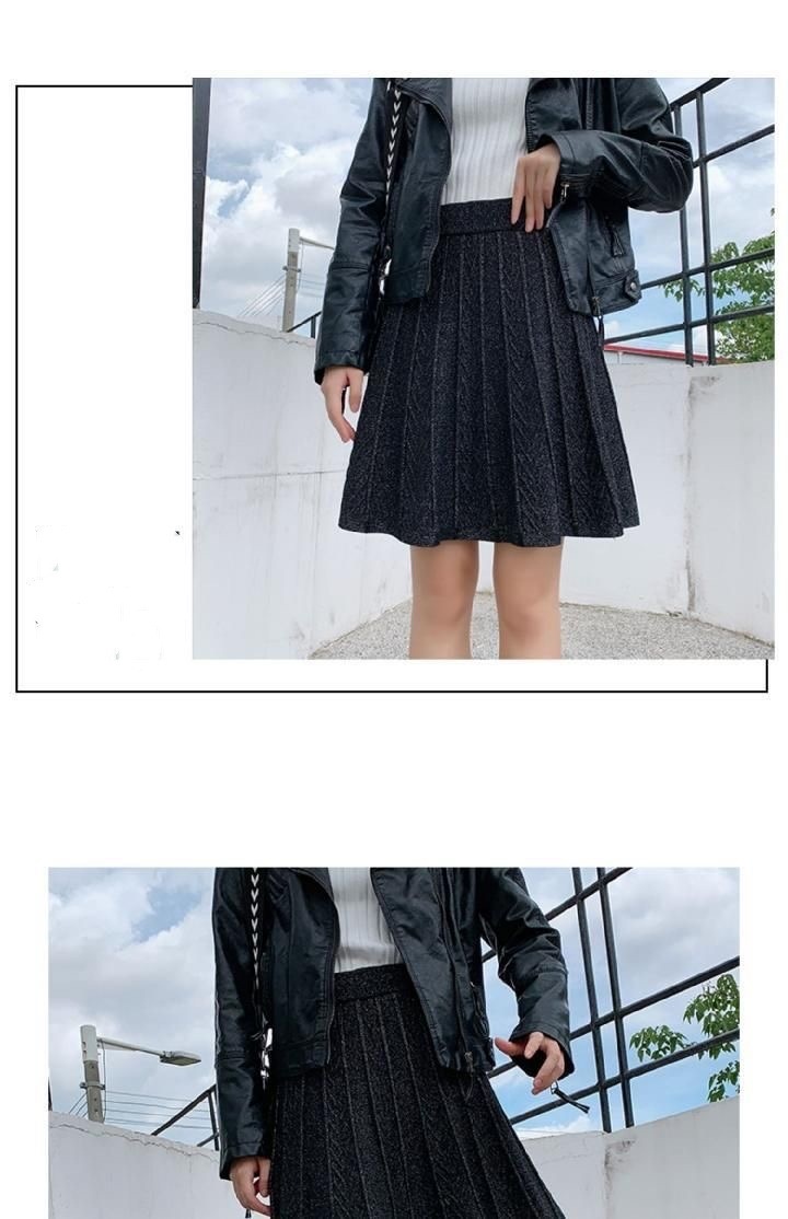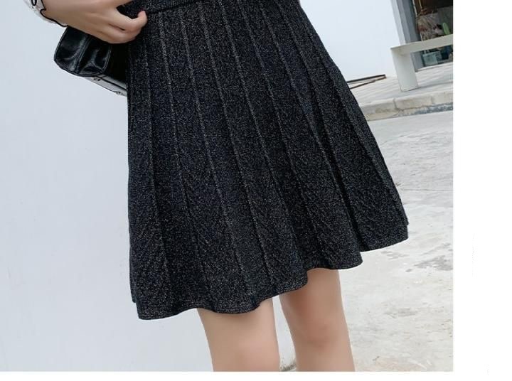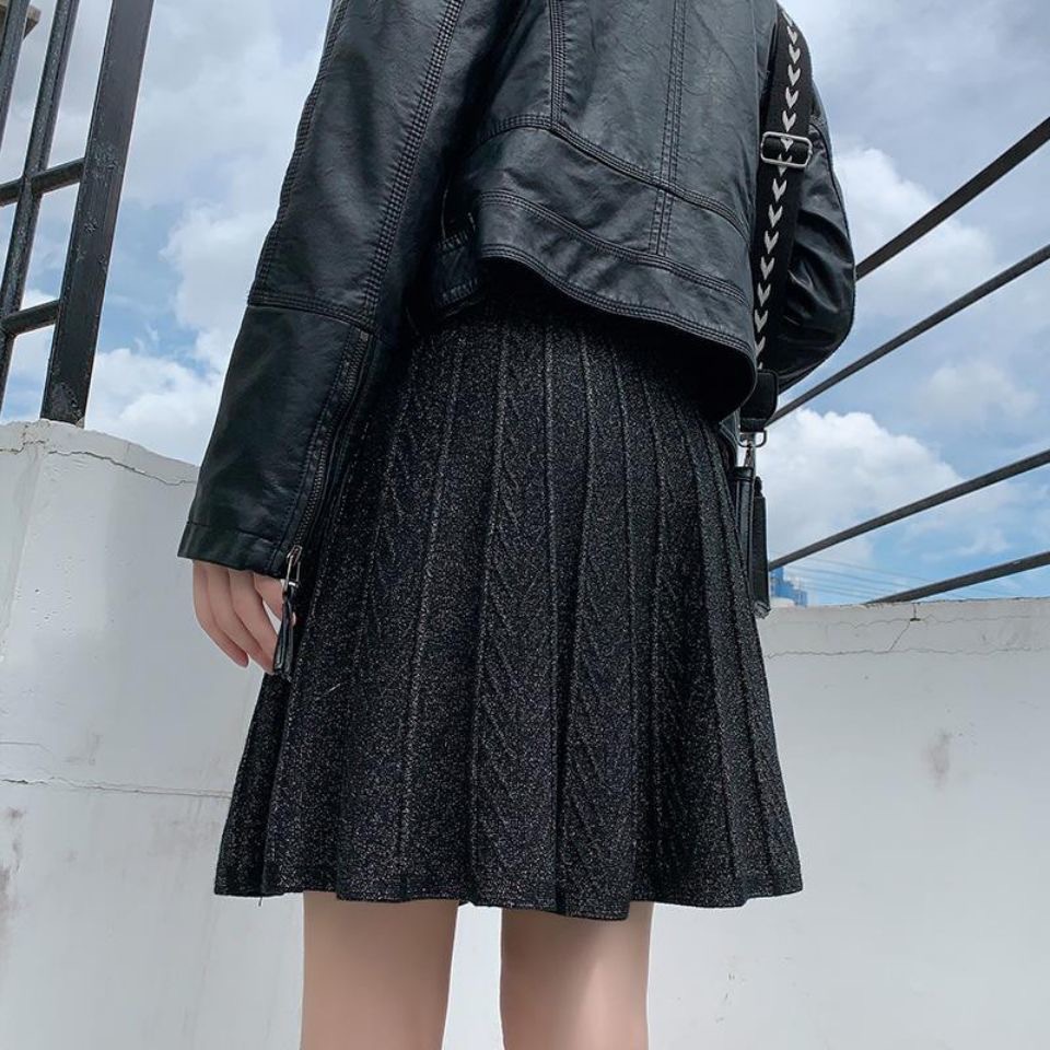 立体感のある編み柄が目を引く、上品なニット素材のフレアスカートです。