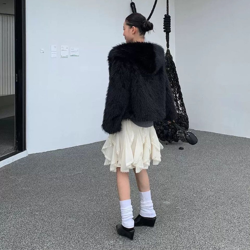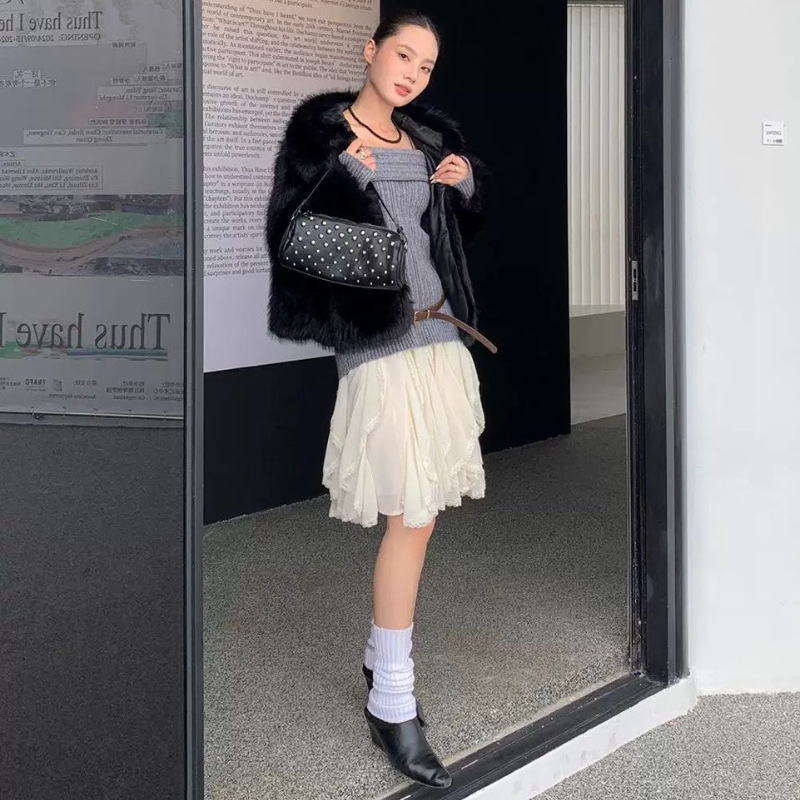 不規則な裾のラインと繊細なレースが動きのあるシルエットを演出し上品な華やかさを表現