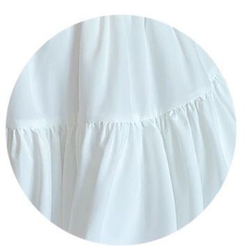 裾に施されたティアードデザインとギャザーフリルが立体感を生み出し、動くたびに揺れる女性らしいシルエットを演出します。