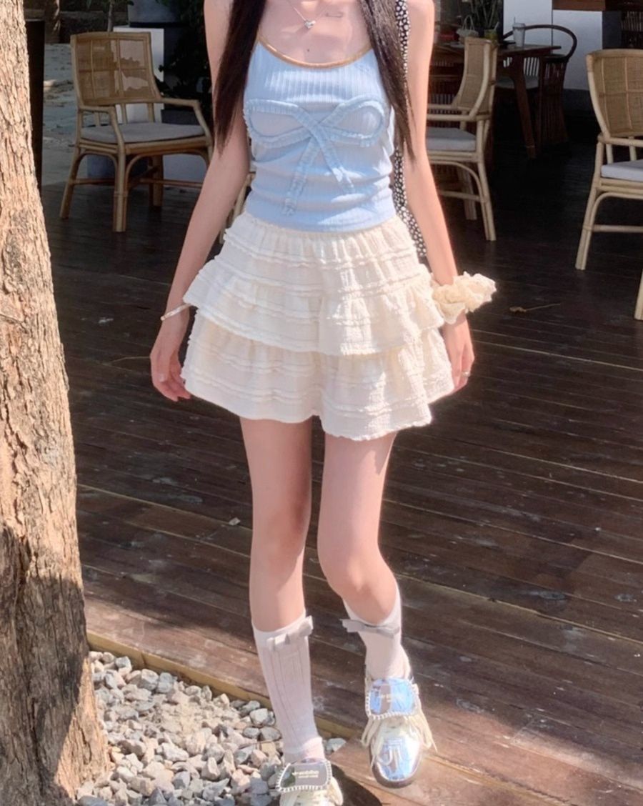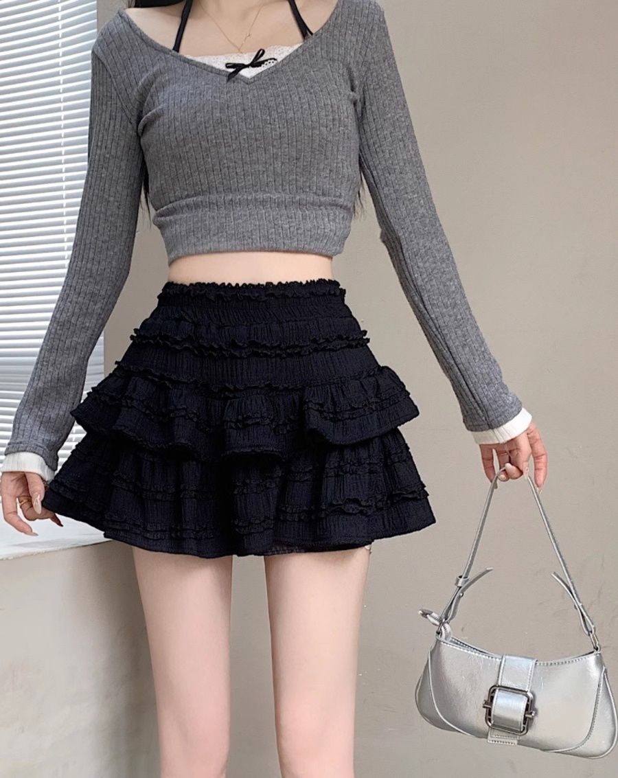 何層にも重なったティアードフリルが動くたびに揺れて、女性らしい可愛らしさを演出します。