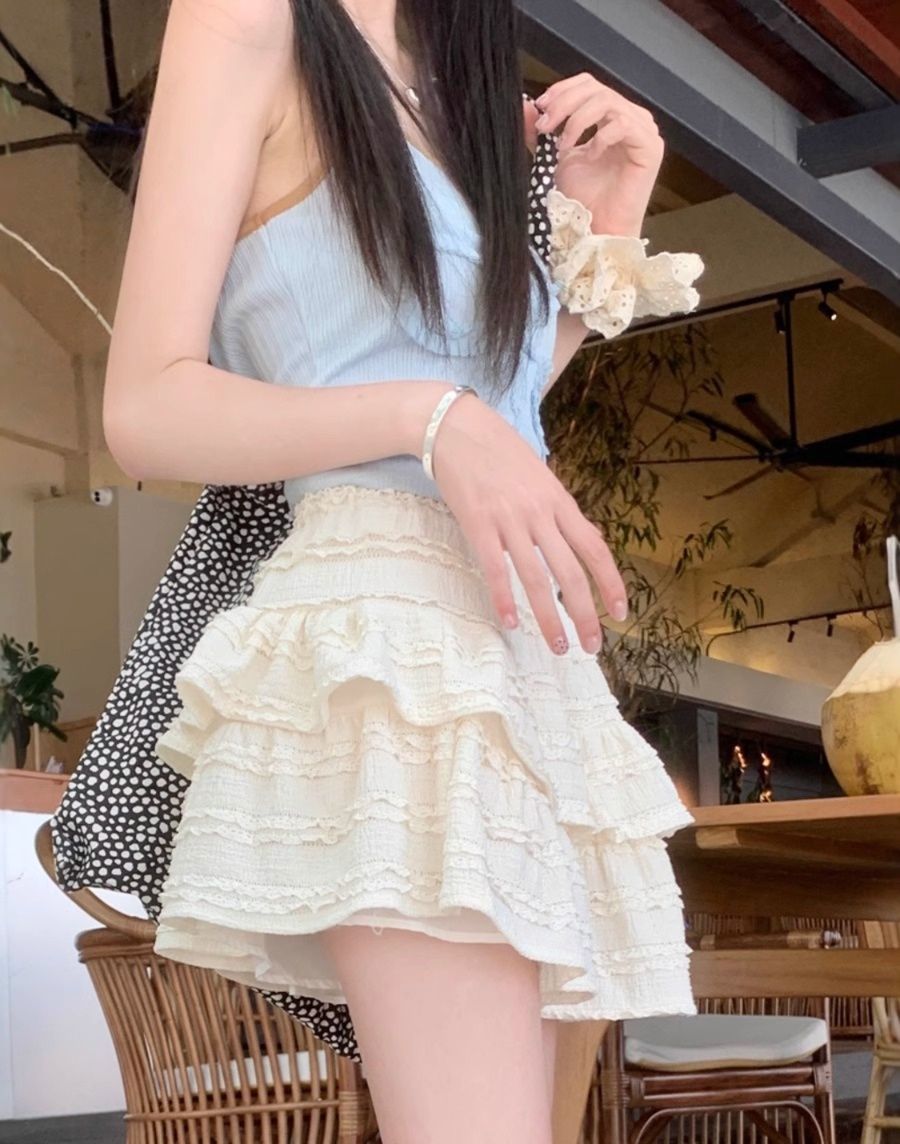 軽やかな素材感が魅力的な段々フリルデザインのフレアスカートです。