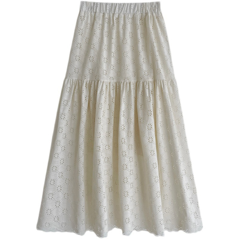 ゆったりとしたデザインの透かし彫りレーススカートが登場しました。 肌心地の良い素材でマキシ・ロング丈のフレアスカートは、これからの季節にピッタリ。 上品な透かし模様が美しく、一度着ると手放したくなる逸品です。