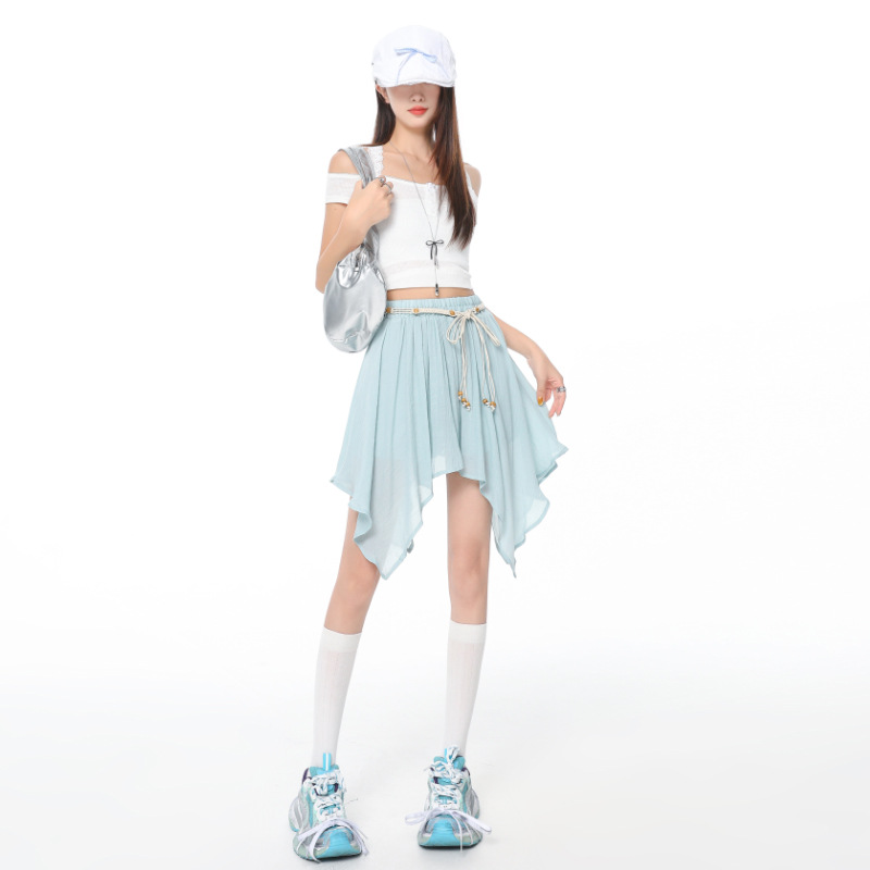 軽やかな素材感で動くたびに揺れる裾のラインが女性らしさを演出。カジュアルからガーリーまで幅広いコーディネートに対応できる一枚です。